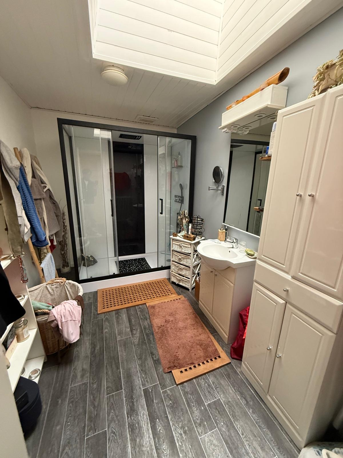 Un étage lumineux, accueillant et plein de charme : l’étage se compose d’un espace de vie confortable et lumineux, pensé pour offrir des moments conviviaux en famille. Vous y trouverez : une pièce à vivre agréable (24,35 m²), un bureau (8,15 m²), parfait pour le télétravail, un WC indépendant, une salle d’eau, une cuisine fonctionnelle et ouverte sur l’espace de vie, un salon chaleureux (14,10 m²), une chambre confortable (14,13 m²) et surtout une véranda lumineuse (11,90m²), véritable atout de cette maison, offrant une vue agréable tout en étant utilisable en toute saison.